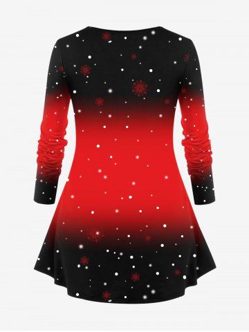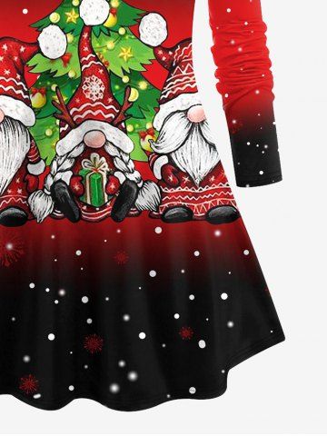 Plus Size Christmas Tree Santa Claus Colorblock Print T-shirt - Red - L