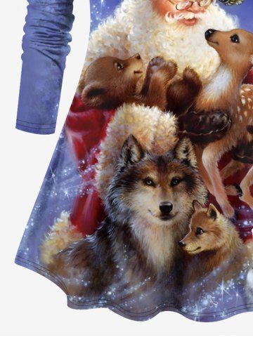 Plus Size Christmas Tree Santa Claus Elk Rabbit Dog Print T-shirt - Blue - 6x