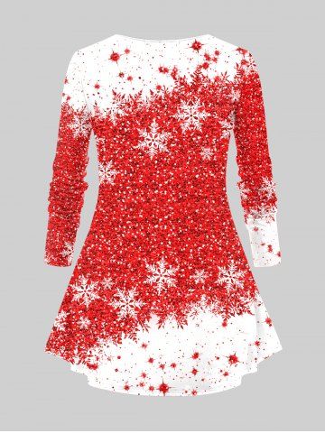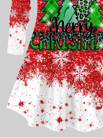 Plus Size Christmas Tree Snowflake Letters Sparkling Sequins Print T-shirt - Red - S