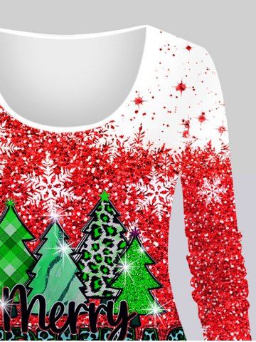 Plus Size Christmas Tree Snowflake Letters Sparkling Sequins Print T-shirt - Red - 4x
