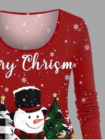 Plus Size Christmas Tree Snowflake Snowman Gift Box Print T-shirt - Red - L