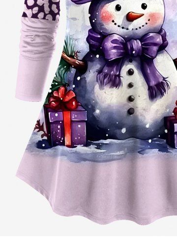 Plus Size Christmas Tree Snowman Gift Box Print Raglan Sleeve T-shirt - Purple - 6x