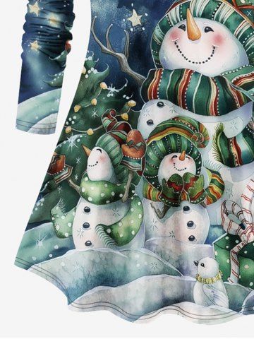 Plus Size Christmas Tree Snowman Rabbit Bird Star Print T-shirt - Blue - 4x