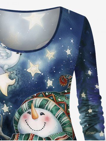 Plus Size Christmas Tree Snowman Rabbit Bird Star Print T-shirt - Blue - 6x