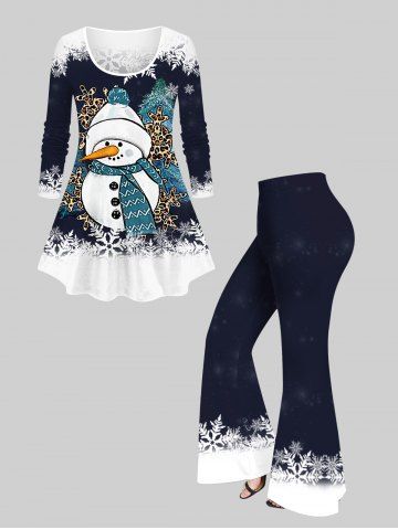 Plus Size Christmas Tree Snowman Snowflake Colorblock Print T-shirt - Black - 1x