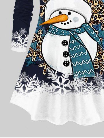 Tops > Plus Size Christmas Tree Snowman Snowflake Colorblock Print T-shirt