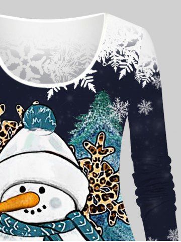 Tops > Plus Size Christmas Tree Snowman Snowflake Colorblock Print T-shirt