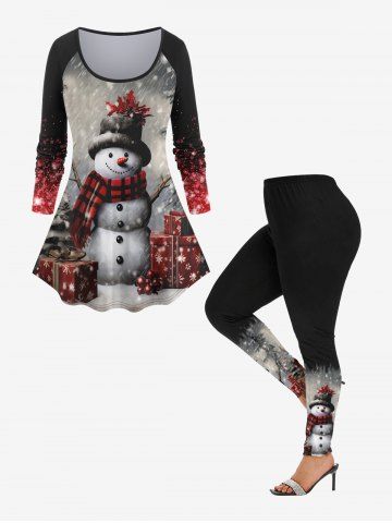 Plus Size Christmas Tree Snowman Snowflake Gift Box Sparkling Sequin 3D Print Raglan Sleeve T-shirt - Black - 1x