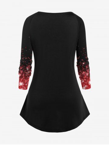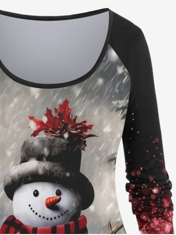 Plus Size Christmas Tree Snowman Snowflake Gift Box Sparkling Sequin 3D Print Raglan Sleeve T-shirt - Black - 3x