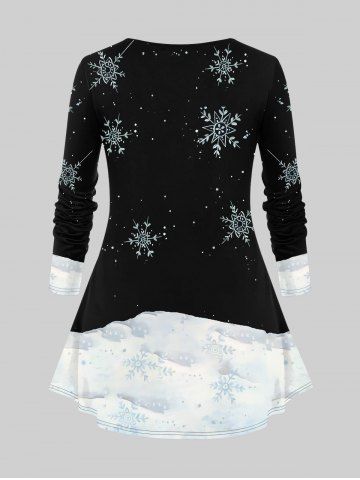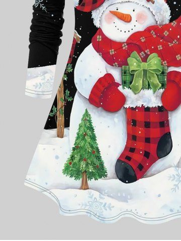 Plus Size Christmas Tree Snowman Snowflake Mailbox Print T-shirt - Black - Xs
