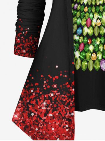 Plus Size Christmas Tree Sparkling Sequin Glitter 3D Print 2 In 1 T-shirt - Black - 4x