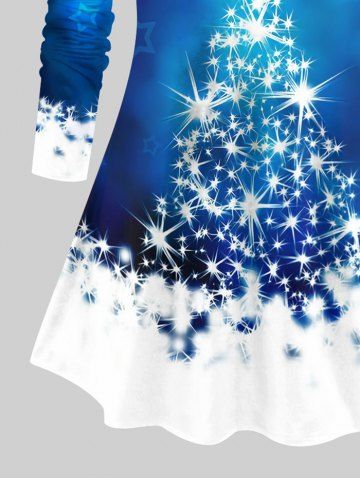 Plus Size Christmas Tree Star Colorblock Glitter 3D Print T-shirt - Blue - M