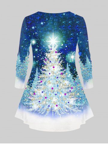 Plus Size Christmas Tree Star Galaxy Glitter Print T-shirt - Blue - S
