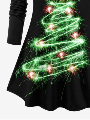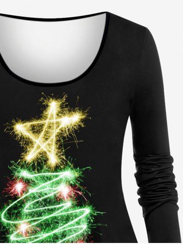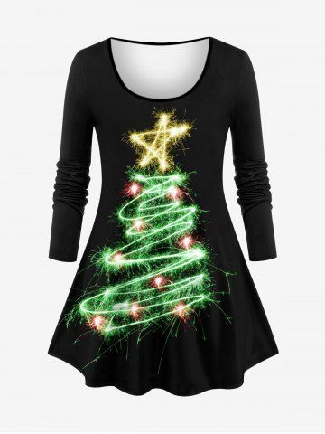 Plus Size Christmas Tree Star Light Glitter 3D Print T-shirt - Black - L