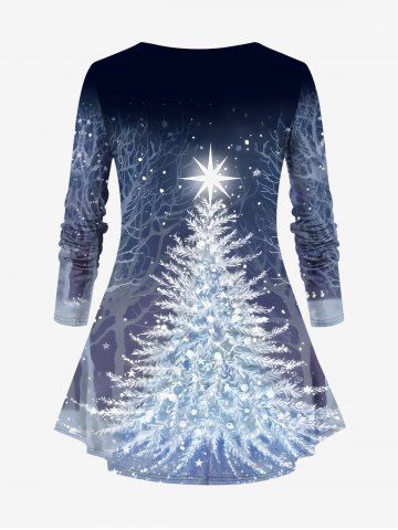 Plus Size Christmas Tree Star Snowflake Forest Print T-shirt - Blue Gray - 4x