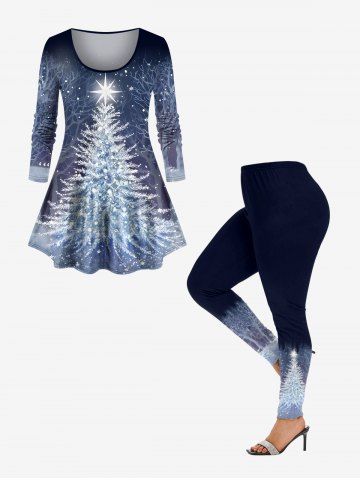 Plus Size Christmas Tree Star Snowflake Forest Print T-shirt - Blue Gray - 6x