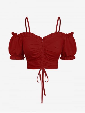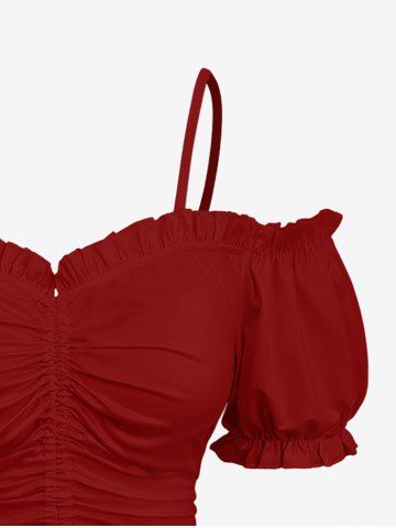 Plus Size Cinched Ruched Ruffles Cold Shoulder Cami Top - Red - 3x