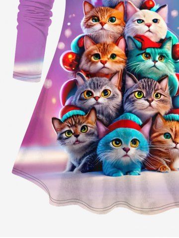 Plus Size Colorful Cat Christmas Tree Stars Snowflake Print Ombre Long Sleeves T-shirt - Multi-a - 6x