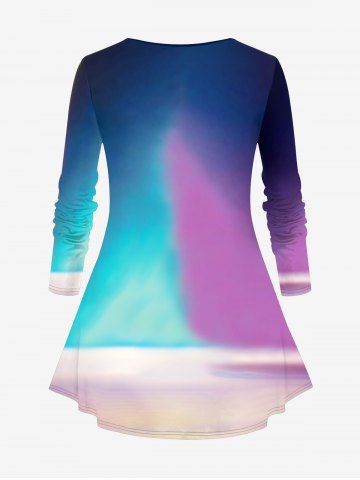 Tops > Plus Size Colorful Cat Christmas Tree Stars Snowflake Print Ombre Long Sleeves T-shirt