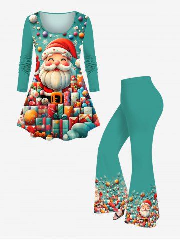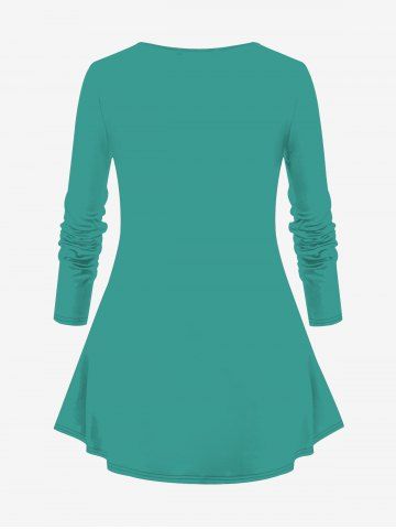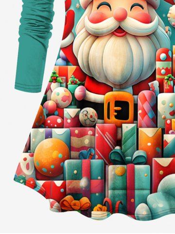 Plus Size Colorful Christmas Gift Ball Santa Claus Snowflake Print Long Sleeves T-shirt - Green - 1x