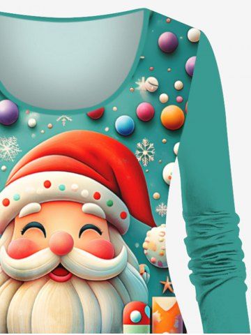 Plus Size Colorful Christmas Gift Ball Santa Claus Snowflake Print Long Sleeves T-shirt - Green - 3x