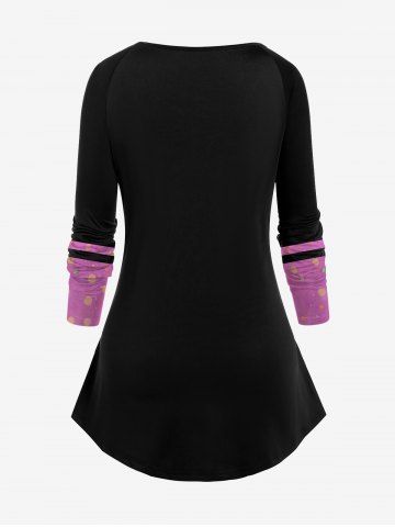 Tops > Plus Size Colorful Striped Christmas Hat Owl Gift Box Polka Dot Print Raglan Sleeves Ombre T-shirt