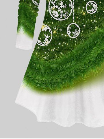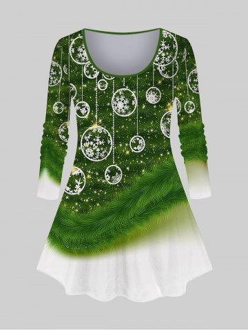 Plus Size Glitter Christmas Ball Tree Snowflake Print Ombre Long Sleeves T-shirt - Green - Xs