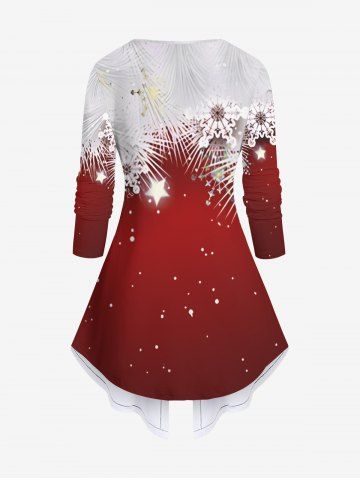 Plus Size Glitter Christmas Tree Snowflake Print Ombre Patchwork Long Sleeves T-shirt - Red - Xs