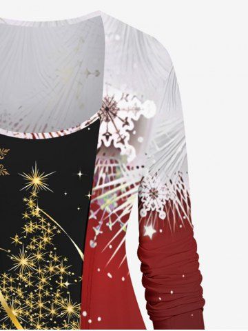 Plus Size Glitter Christmas Tree Snowflake Print Ombre Patchwork Long Sleeves T-shirt - Red - 3x