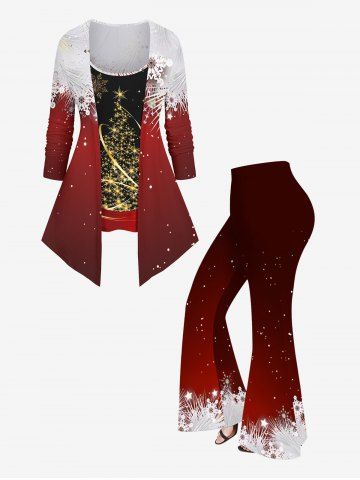Plus Size Glitter Christmas Tree Snowflake Print Ombre Patchwork Long Sleeves T-shirt - Red - 6x
