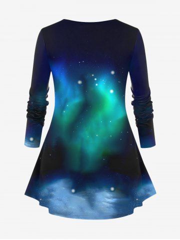 Plus Size Glitter Colorful Christmas Tree Light Galaxy Printed Ombre T-shirt - Deep Blue - L