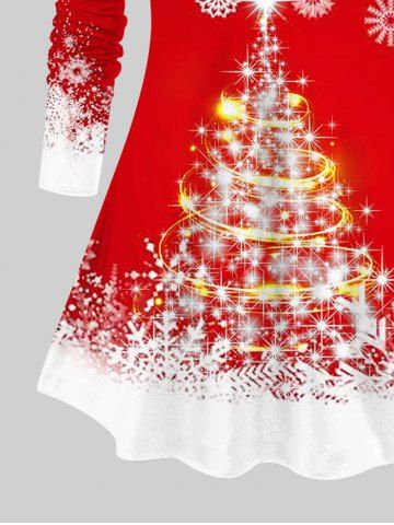 Plus Size Glitter Sparkling Christmas Tree Snowflake Print T-shirt - Red - M