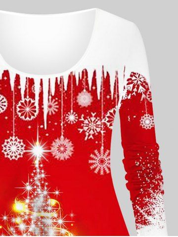 Plus Size Glitter Sparkling Christmas Tree Snowflake Print T-shirt - Red - 4x
