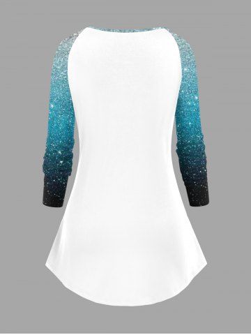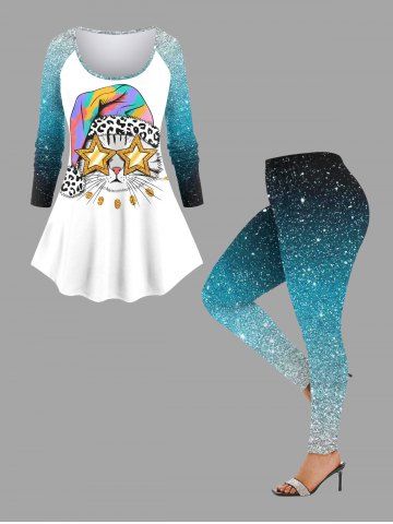 Plus Size Leopard Christmas Hat Star Cat Glitter Ombre Galaxy Print Long Sleeves T-shirt - White - 5x