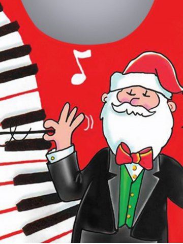Plus Size Santa Claus Piano Music Symbol Print Christmas Long Sleeves T-shirt - Red - S