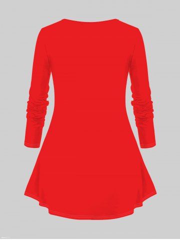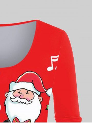 Plus Size Santa Claus Piano Music Symbol Print Christmas Long Sleeves T-shirt - Red - L