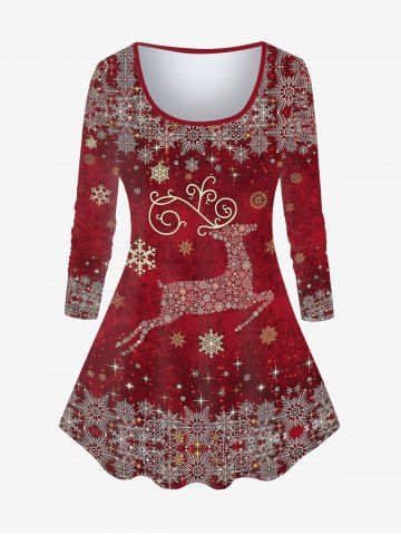 Plus Size Snowflake Elk Print Christmas T-shirt - Deep Red - 1x | Us 14-16
