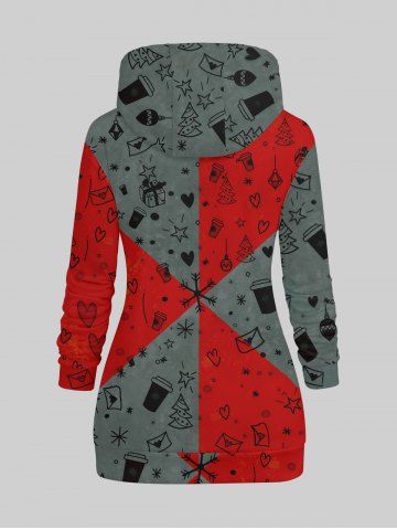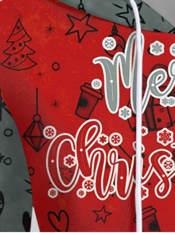 Plus Size Snowman Christmas Tree Heart Coffee Letters Snowflake Stars Print Pocket Drawstring Pullover Hoodie - Red - 6xl