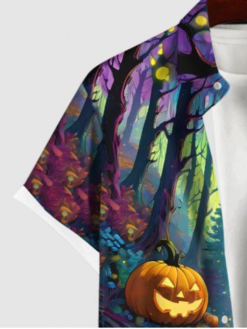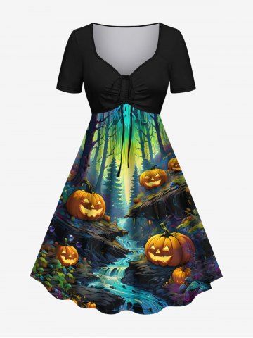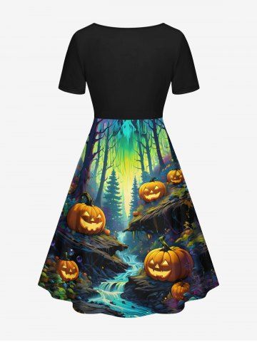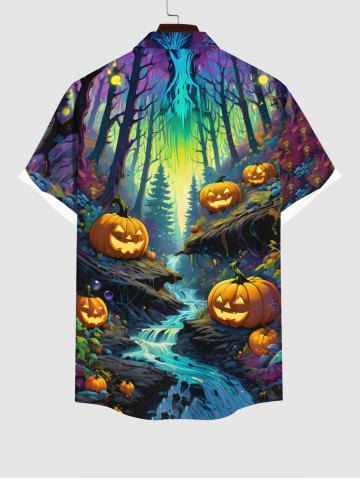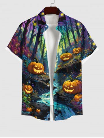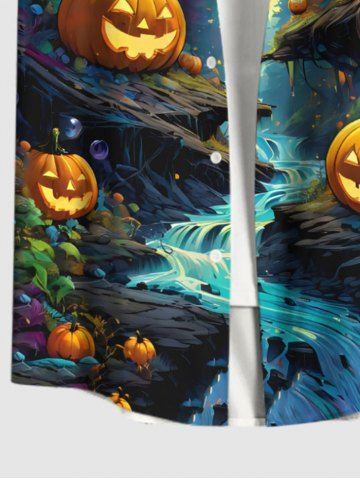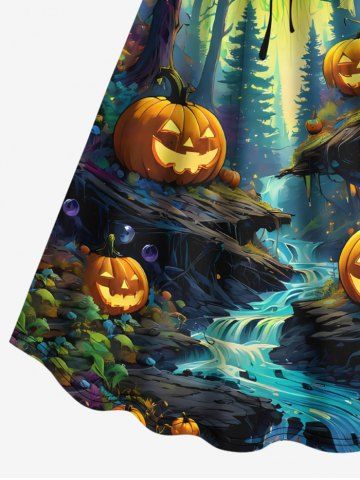 Couple Halloween Outfits > Colorful Pumpkin Forest Leaves River Print Plus Size Matching Set For Couples