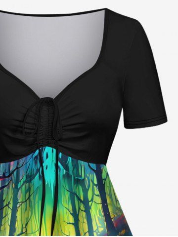 Colorful Pumpkin Forest Leaves River Print Plus Size Matching Set For Couples - Black