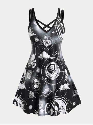 j*****n5Plus Size & Curve Gothic Crisscross Skull Sun Moon Print SundressColor: BLACK Size: 3X | US 22-24I freaking LOVE it!!!nUnique among those that I know Most don’t enjoy the look. THANK YOU!!