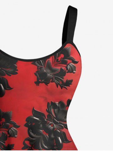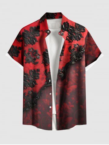 Halloween 3D Ombre Vintage Flower Print Plus Size Matching Outfit For Couples - Red