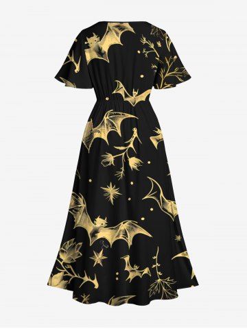 Halloween Bat Branch Galaxy Print Plus Size Matching Outfit For Couples - Black