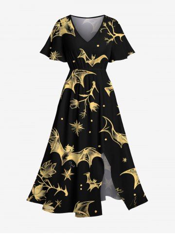 Couple Halloween Outfits > Halloween Bat Branch Galaxy Print Plus Size Matching Outfit For Couples
