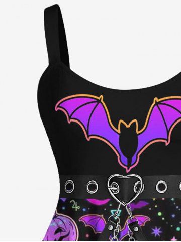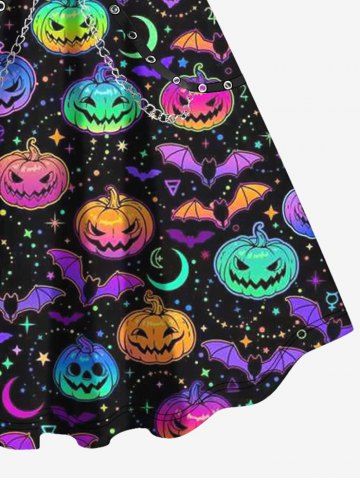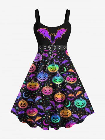 r*****u4Plus Size 3D Halloween Bat Pumpkin Heart Buckle Chains Grommets Print Tank DressColor: MULTI-A Size: 1XI love this dress but I'm not sure when I want to wear it. I've got a pair of boots, and a new necklace with earrings. I'm just waiting on my spiderweb stockings to make it complete.