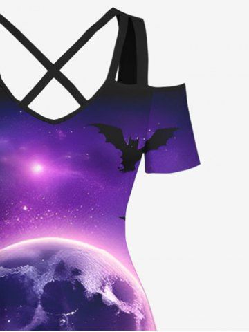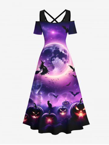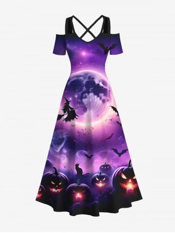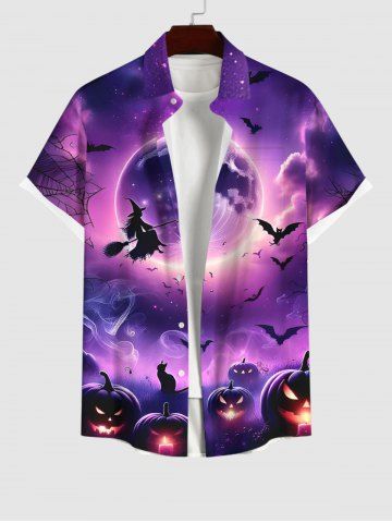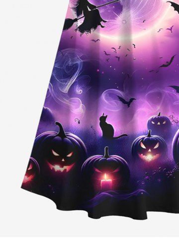 Halloween Costume Galaxy Bat Moon Pumpkin Latern Cat Print Plus Size Matching Outfit For Couples - Purple