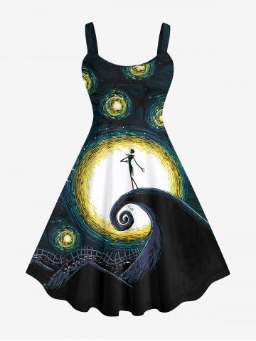 Couple Halloween Outfits > Halloween Costume Oil Painting Galaxy Moon Skeleton Dancer Fence Print Plus Size Matching Outfit For Couples