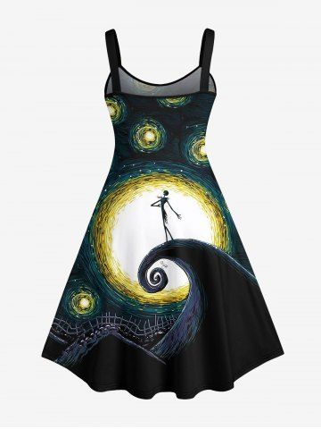 Halloween Costume Oil Painting Galaxy Moon Skeleton Dancer Fence Print Plus Size Matching Outfit For Couples - Black