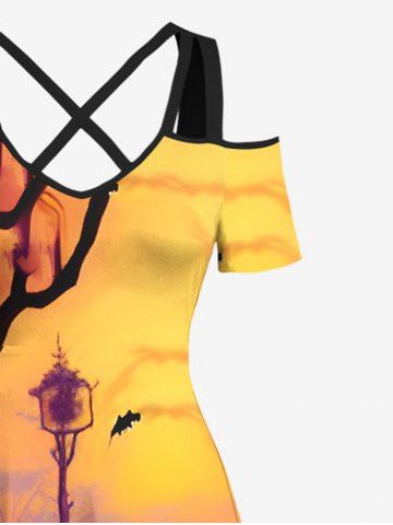 Couple Halloween Outfits > Halloween Costume Pumpkin Latern Bat Tree Street Light Print Plus Size Matching Outfit For Couples