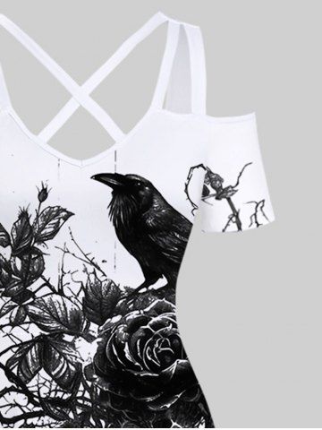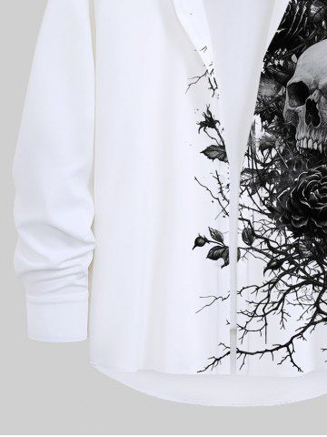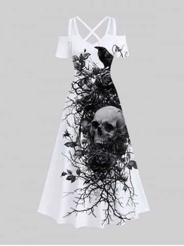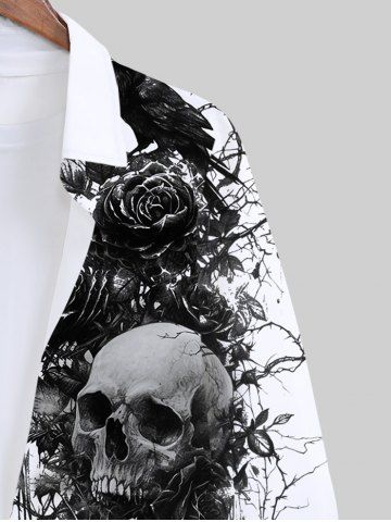 Halloween Costume Skull Rose Flower Branch Crow Print Plus Size Matching Set For Couples - White